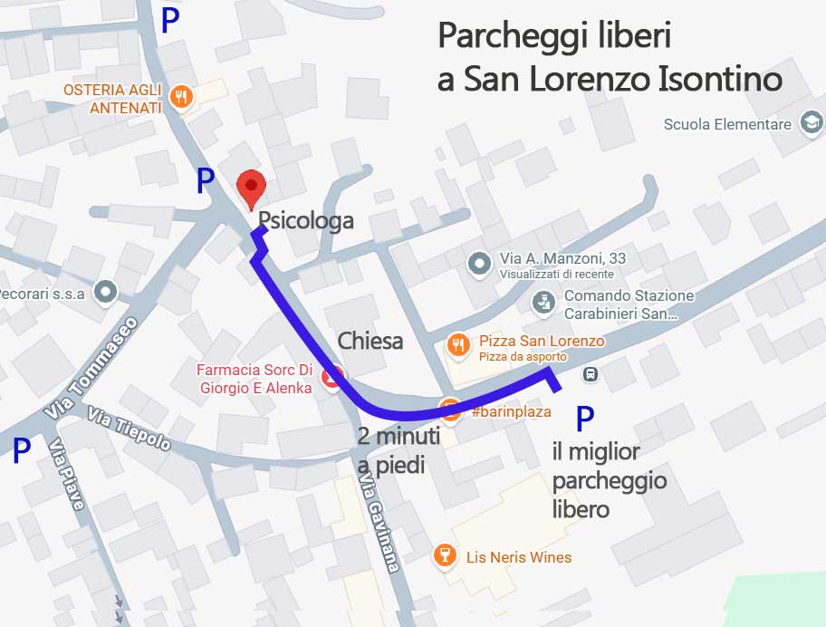 Parcheggi vicino allo studio di psicologa a San Lorenzo Isontino (Gorizia)